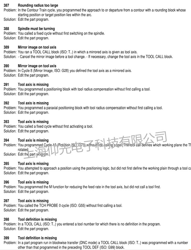海德漢heidenhain530維修報警說明如下圖: